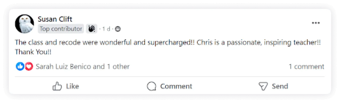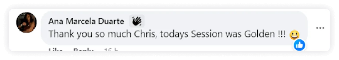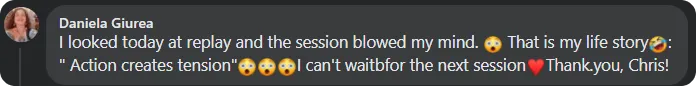 "No more trying to fix myself. He then recoded my sabotaging patterns so now I am on a straight path to my goals.  Thanks, Chris!"